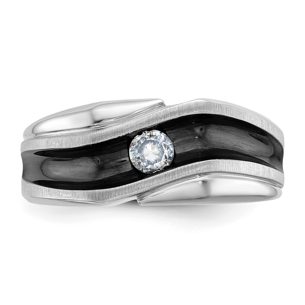 IBGoodman 14k White Gold with Black Rhodium 1/5 carat Lab Grown Diamond VS/SI+ G+ Complete Polished Satin and Grooved Men’s Ring