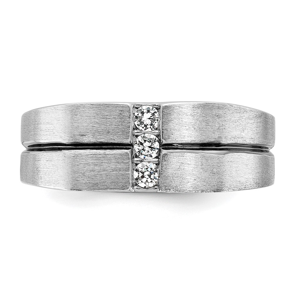 IBGoodman 14k White Gold with Black Rhodium 1/5 carat Lab Grown Diamond VS/SI+ G+ Complete Satin and Grooved Three Stone Men’s Ring