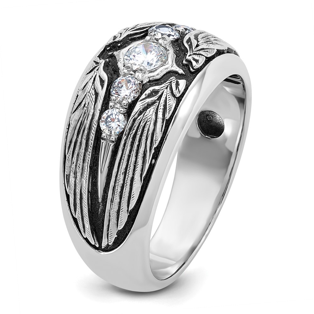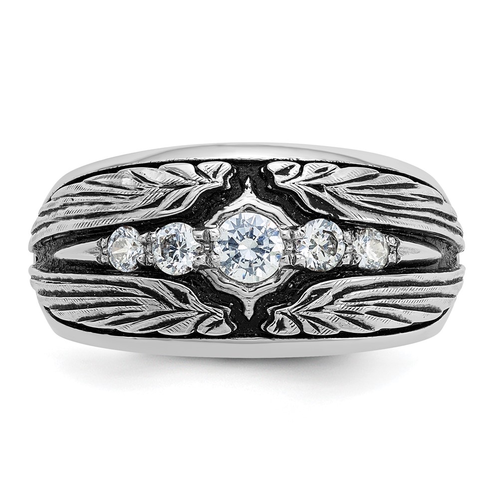 IBGoodman 14k White Gold with Black Rhodium Men’s Polished and Textured 5-Stone 1/2 Carat AA Quality Diamond Ring