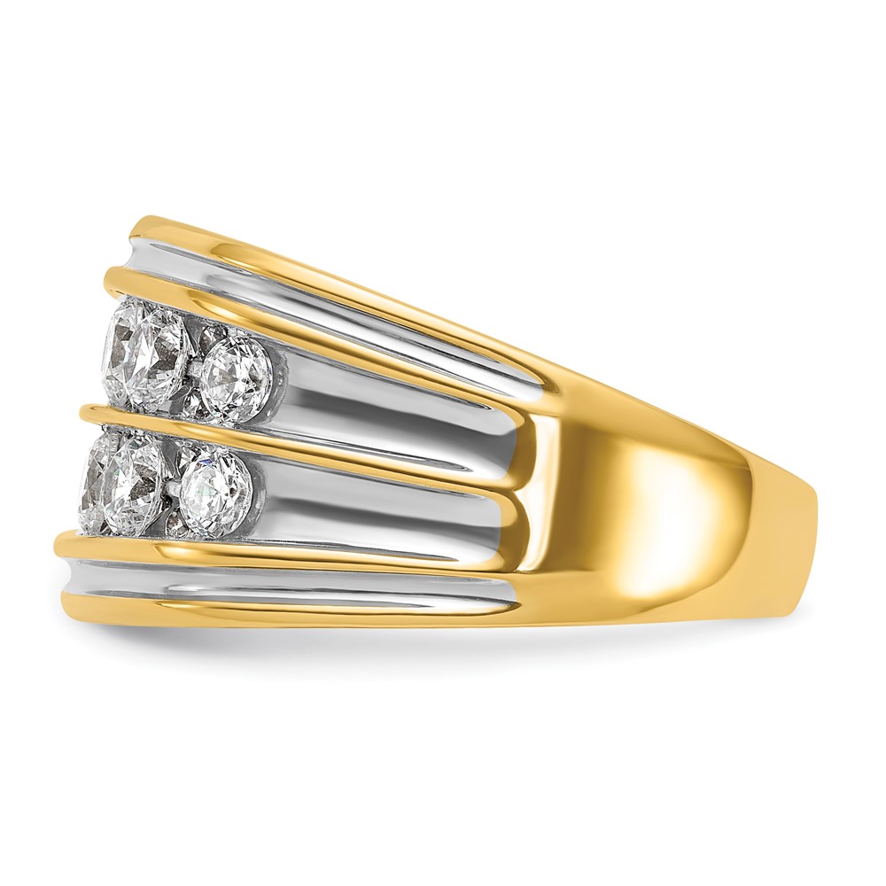IBGoodman 14k with White Rhodium Men’s Polished and Grooved 2-Row 2 Carat AA Quality Diamond Ring