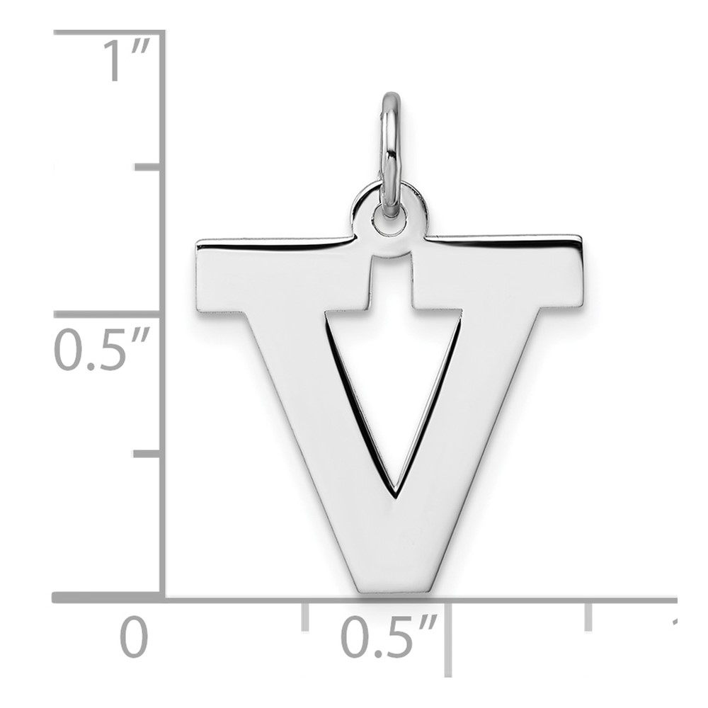 Large Sterling Silver Rhodium-plated Block Letter V Initial Charm