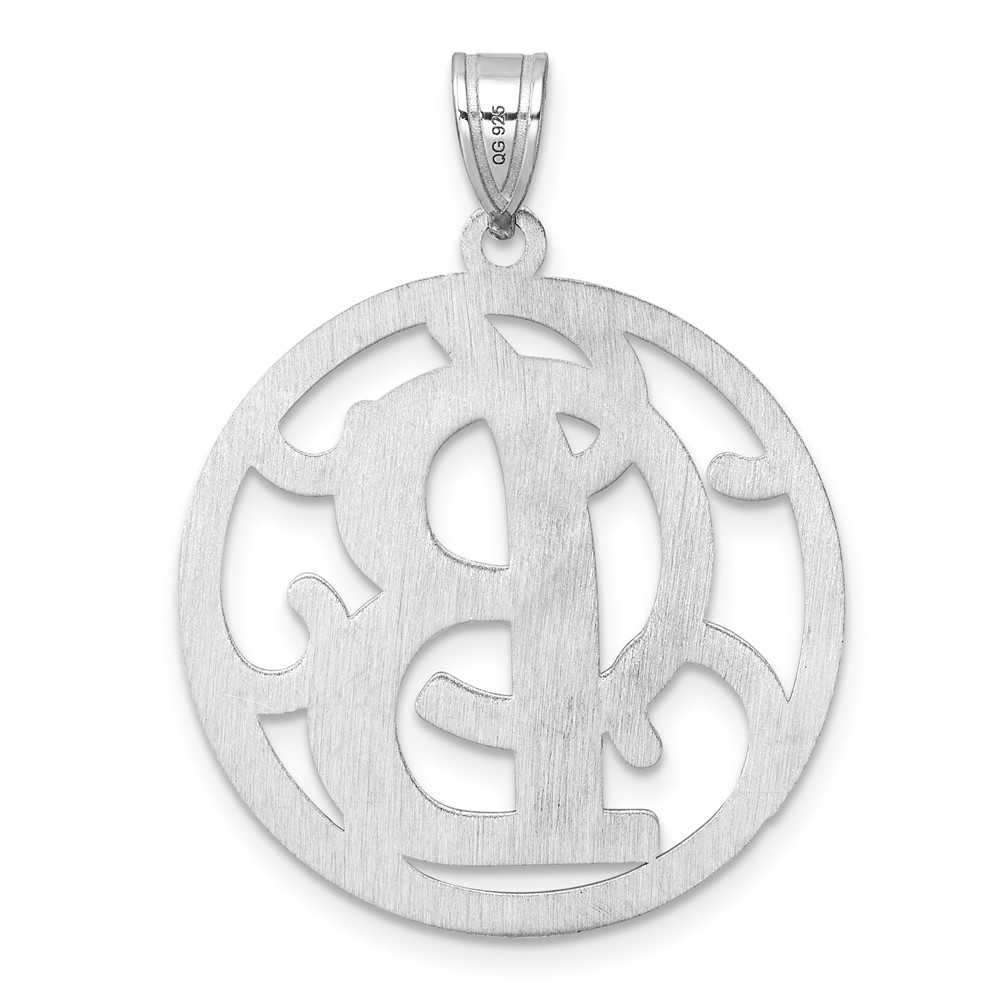 Large Sterling Silver Rhodium-plated Fancy Script Letter B Initial Pendant