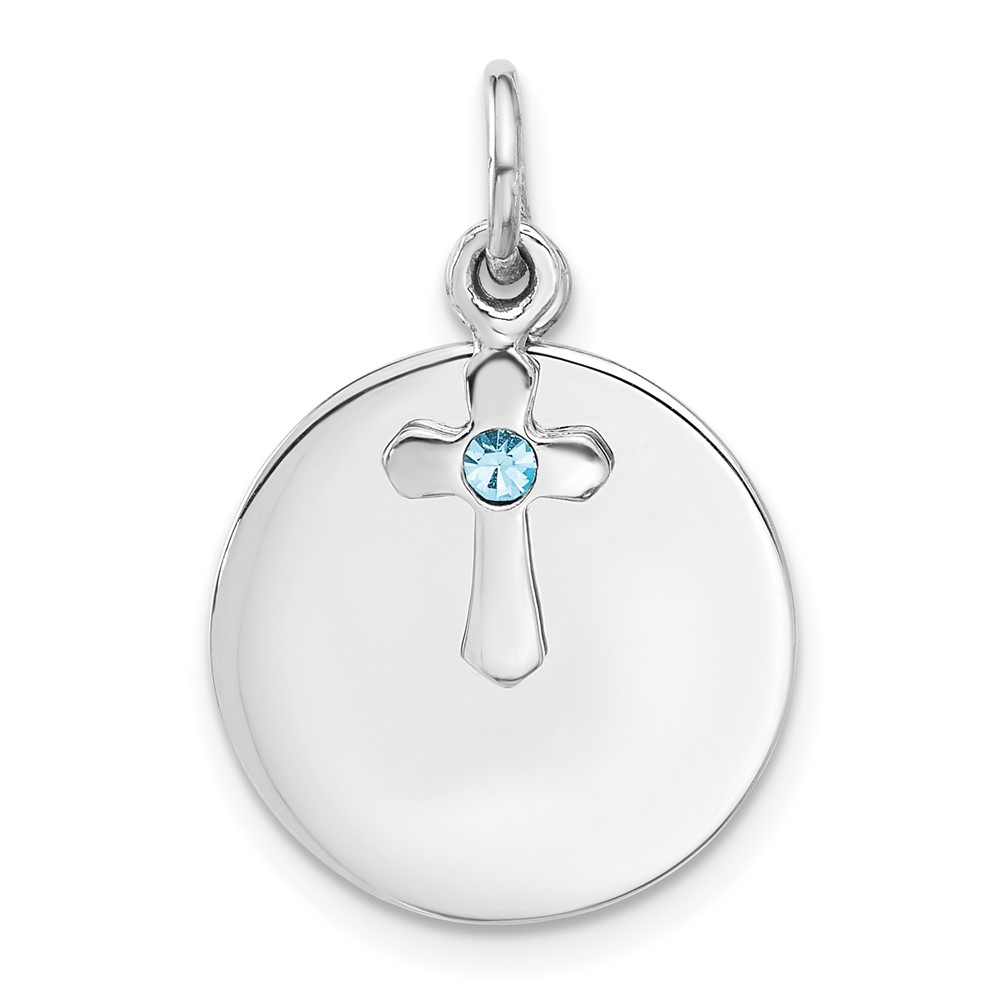 SS Rhodium-plated Circle Disk and Cross with Blue Crystal Pendant