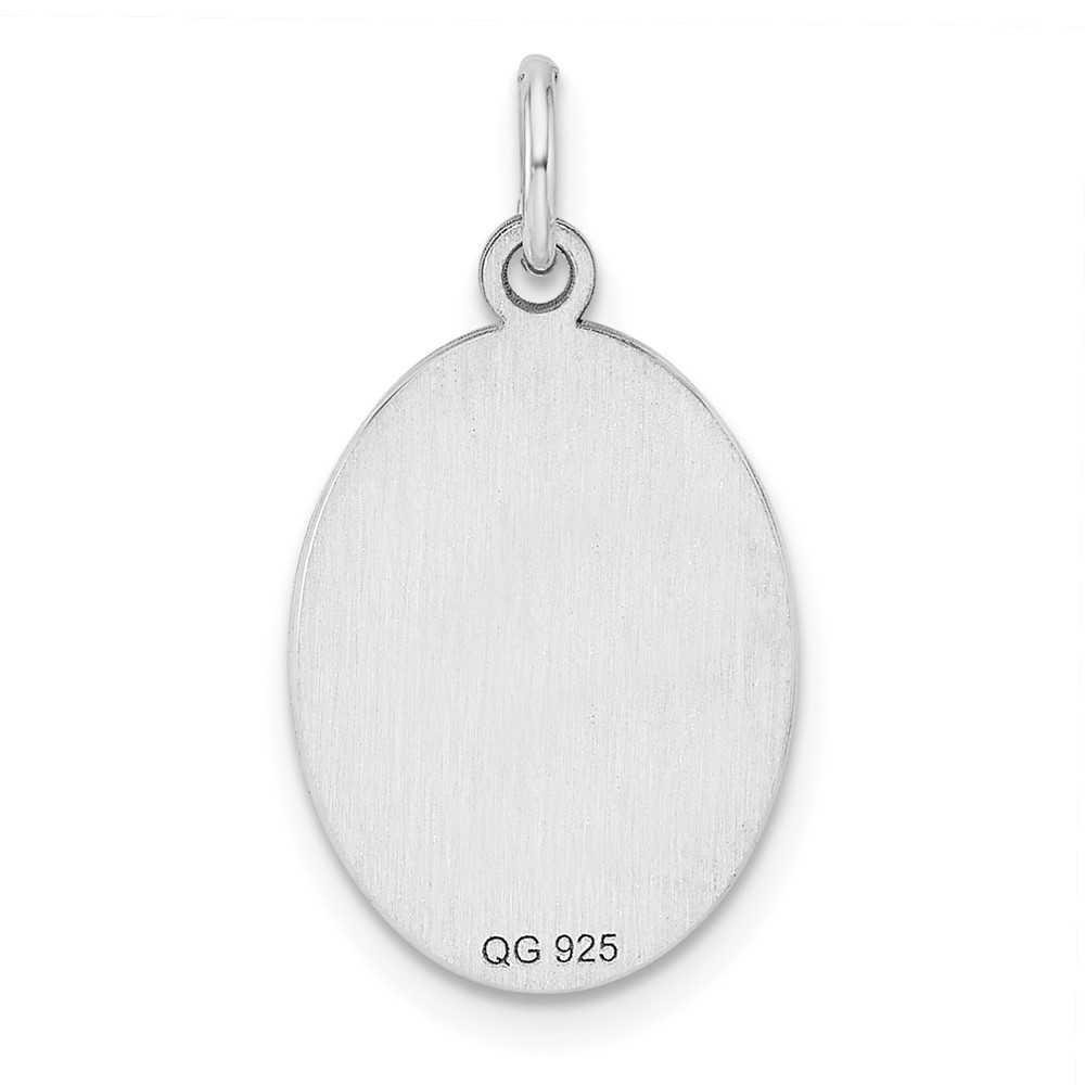 Sterling Silver Rhod-plate Eng. Oval Polish Front/Satin Back Disc Charm
