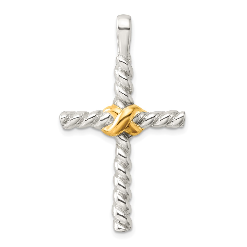 Sterling Silver and Gold-tone Polished Cross Pendant
