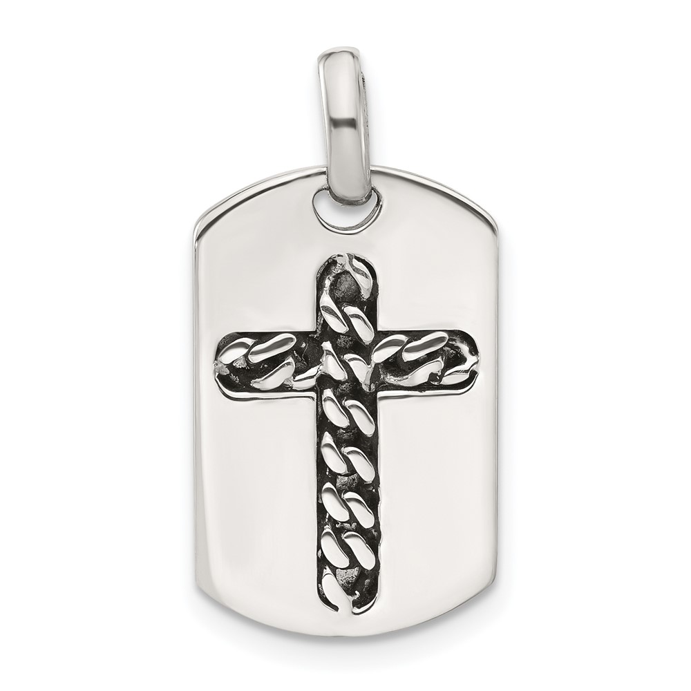 Sterling Silver Antiqued Chain Inlay Cross Dog Tag