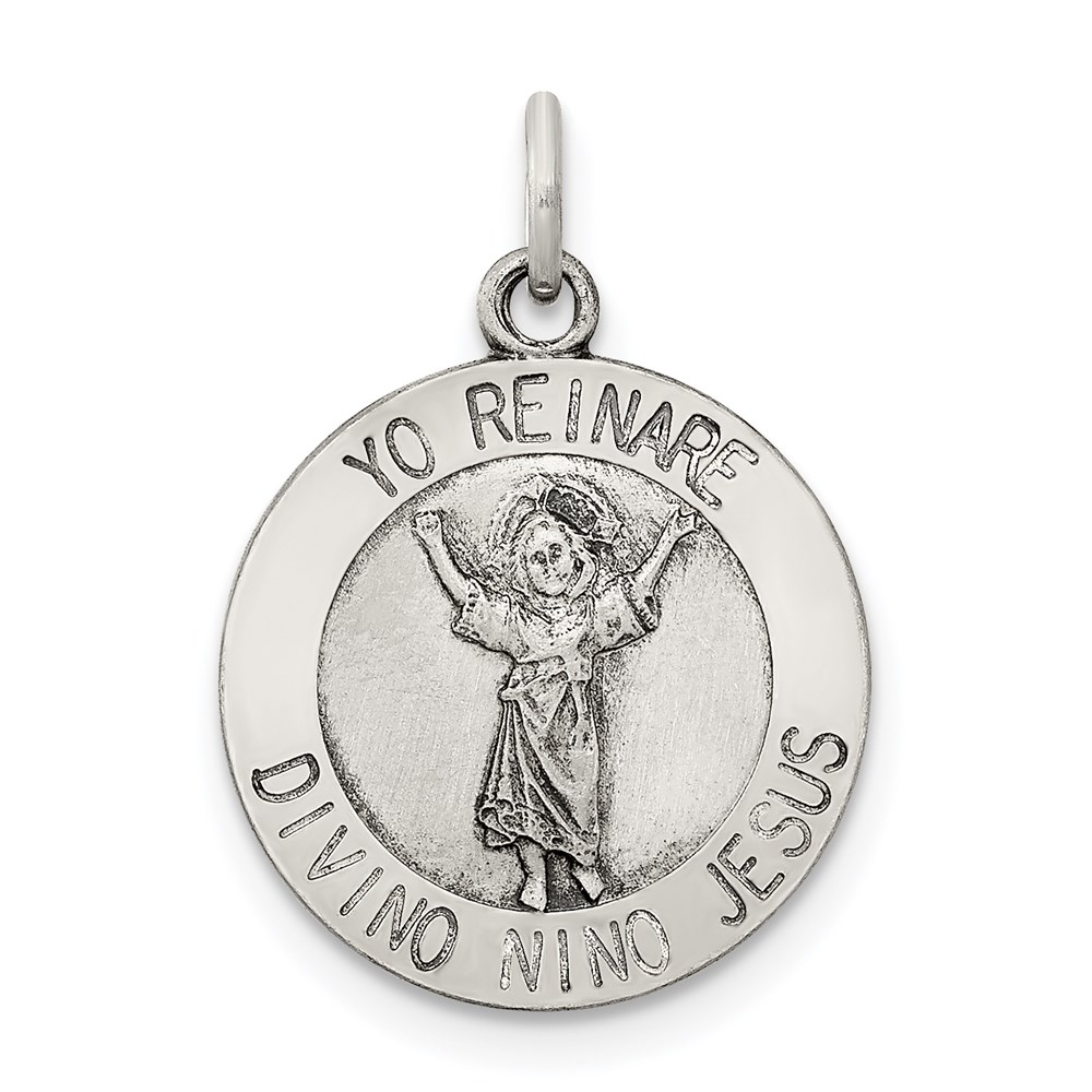 Sterling Silver Antiqued Divino Nino Medal (Divine Infant Jesus)
