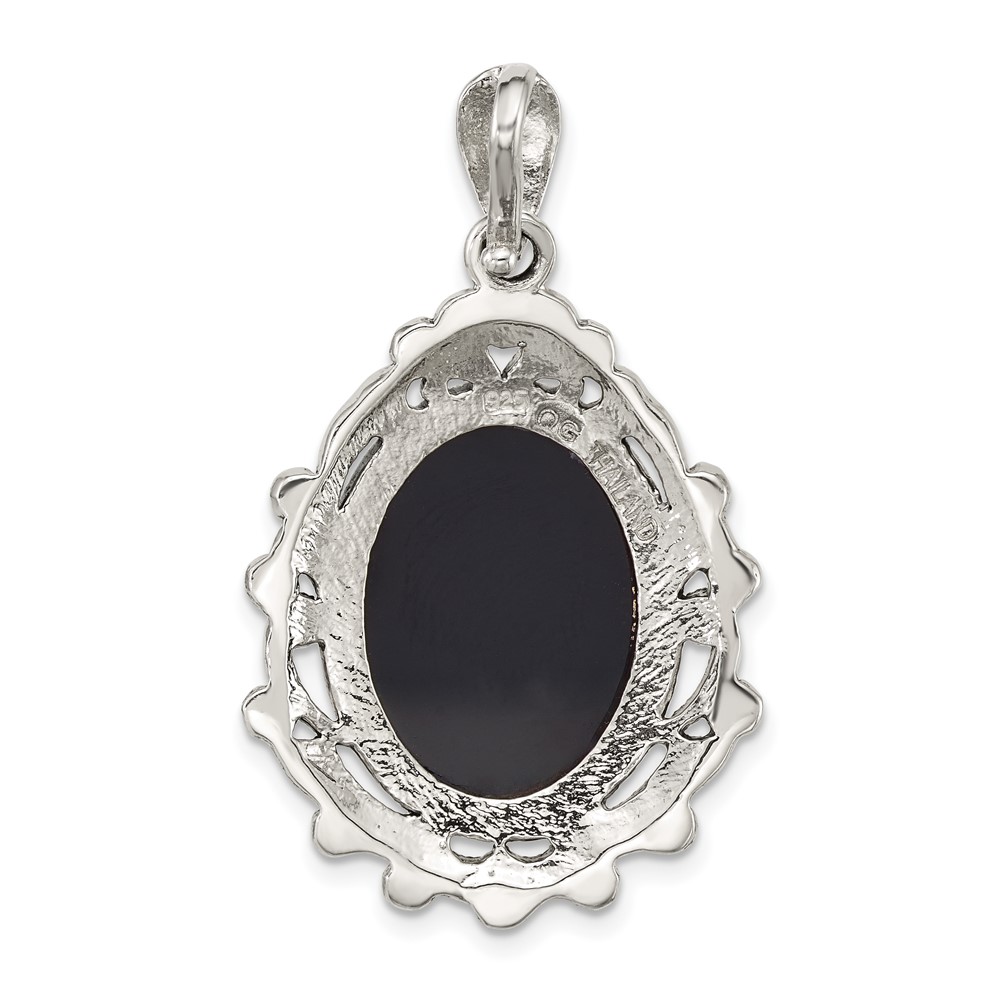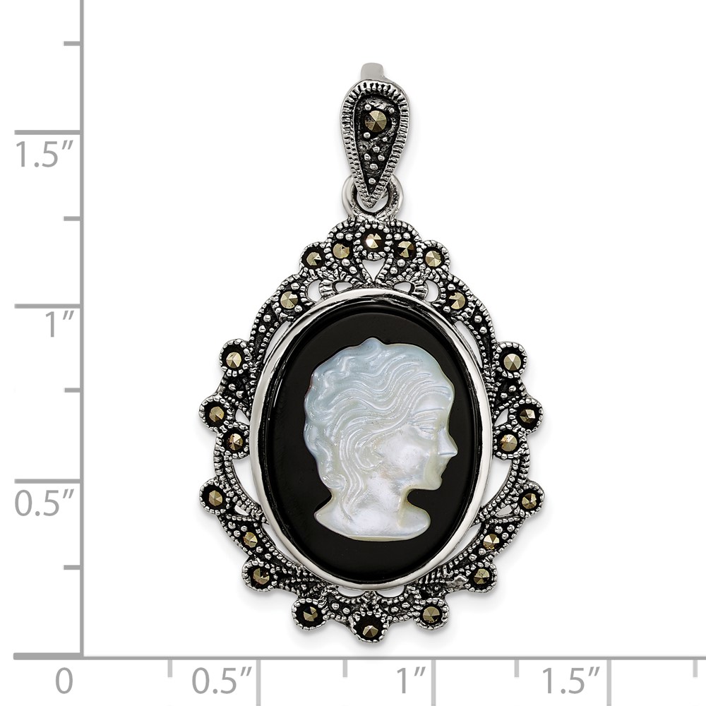 Sterling Silver Antiqued Marcasite Black Agate & MOP White Cameo Pendant
