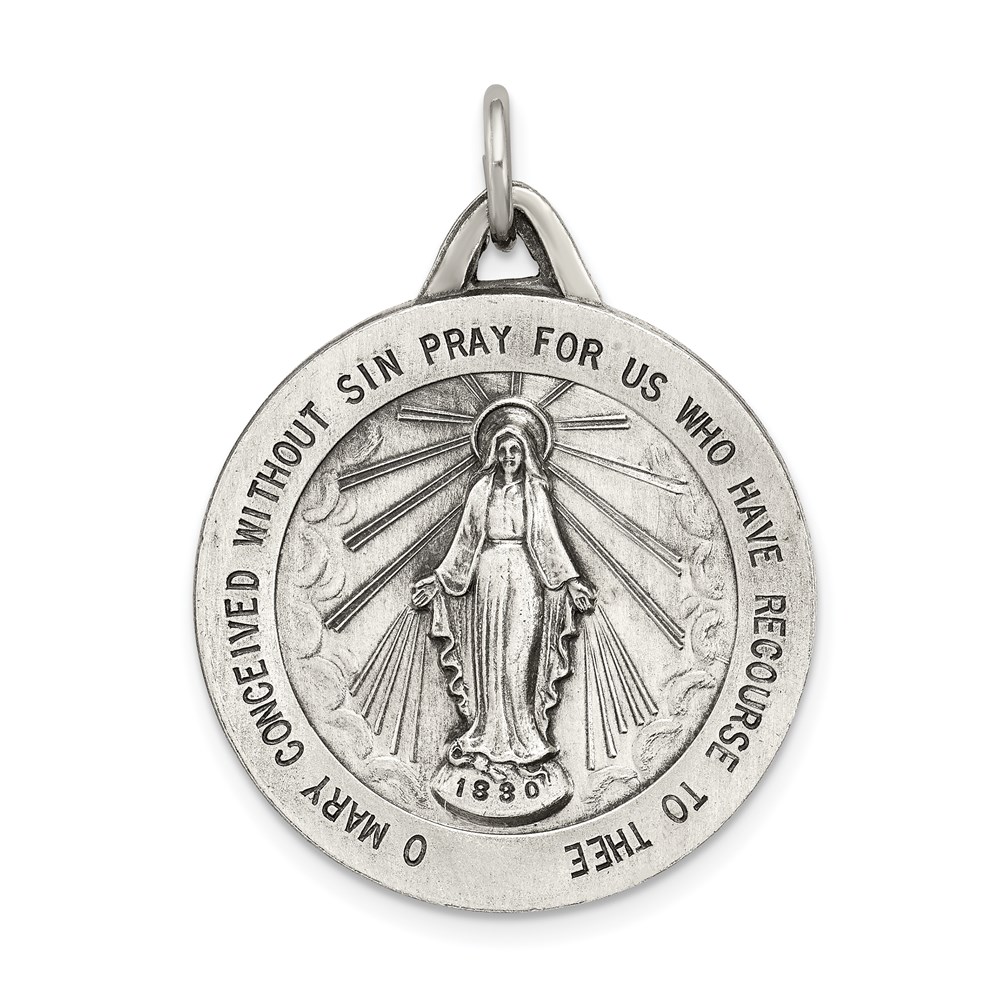 Sterling Silver Antiqued Miraculous Solid Medal