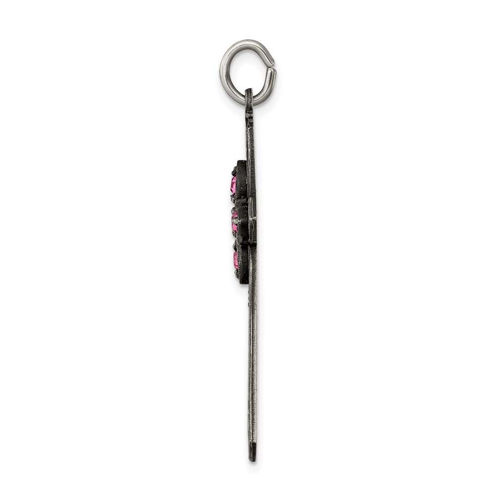 Sterling Silver Antiqued October Glass Birthstone Cross Pendant