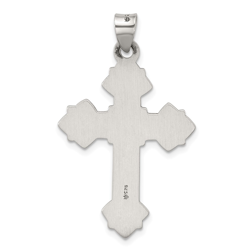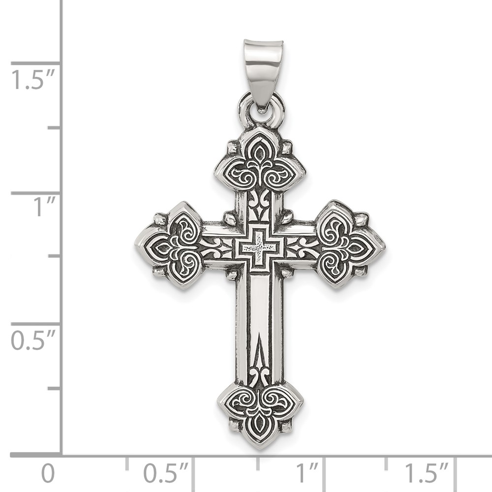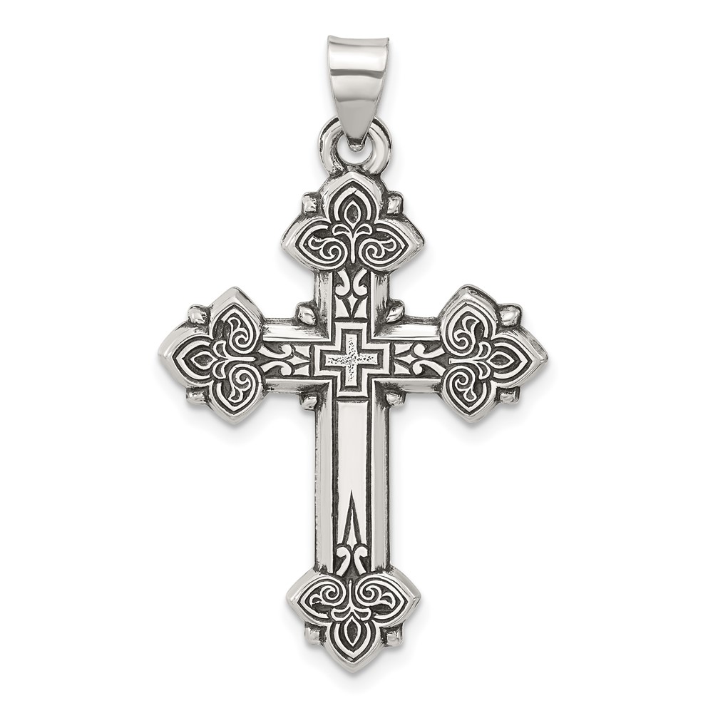 Sterling Silver Antiqued Solid Budded Cross Pendant