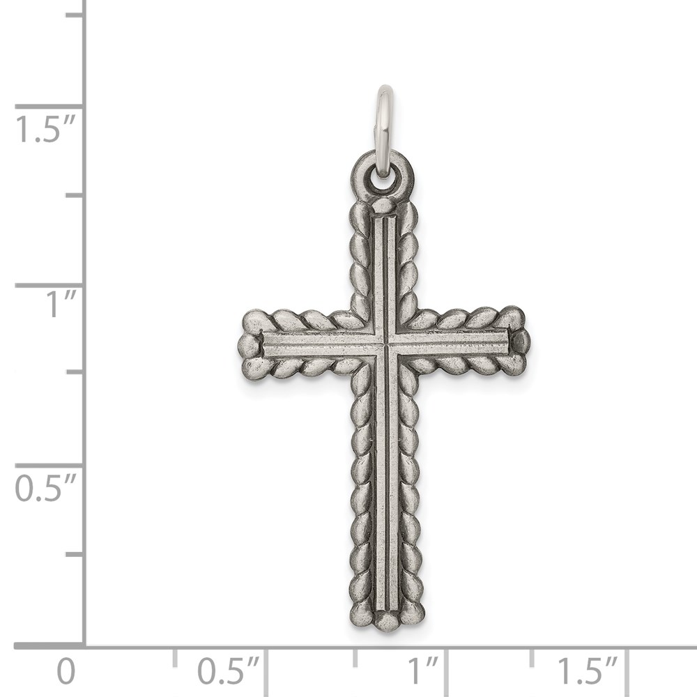 Sterling Silver Antiqued, Textured and Brushed Latin Cross Pendant