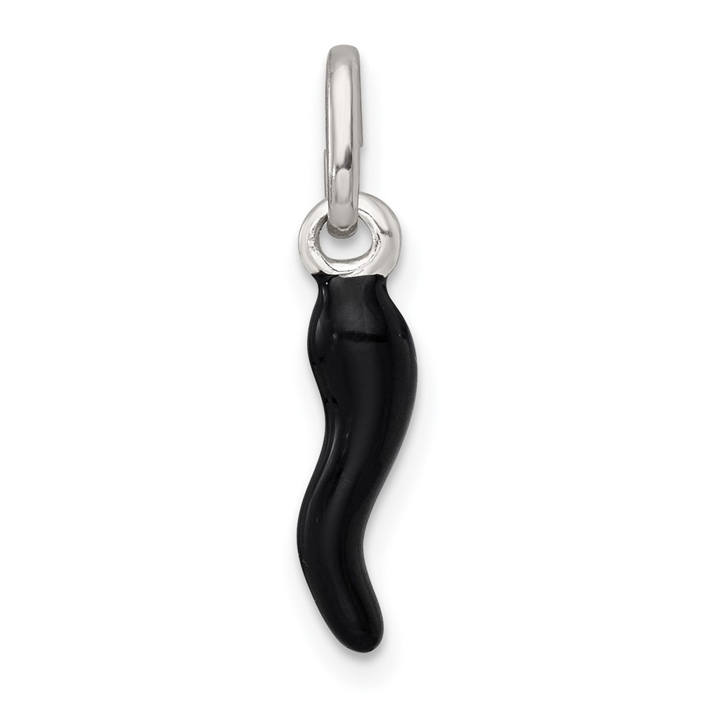 Sterling Silver Black Enamel Italian Horn Pendant