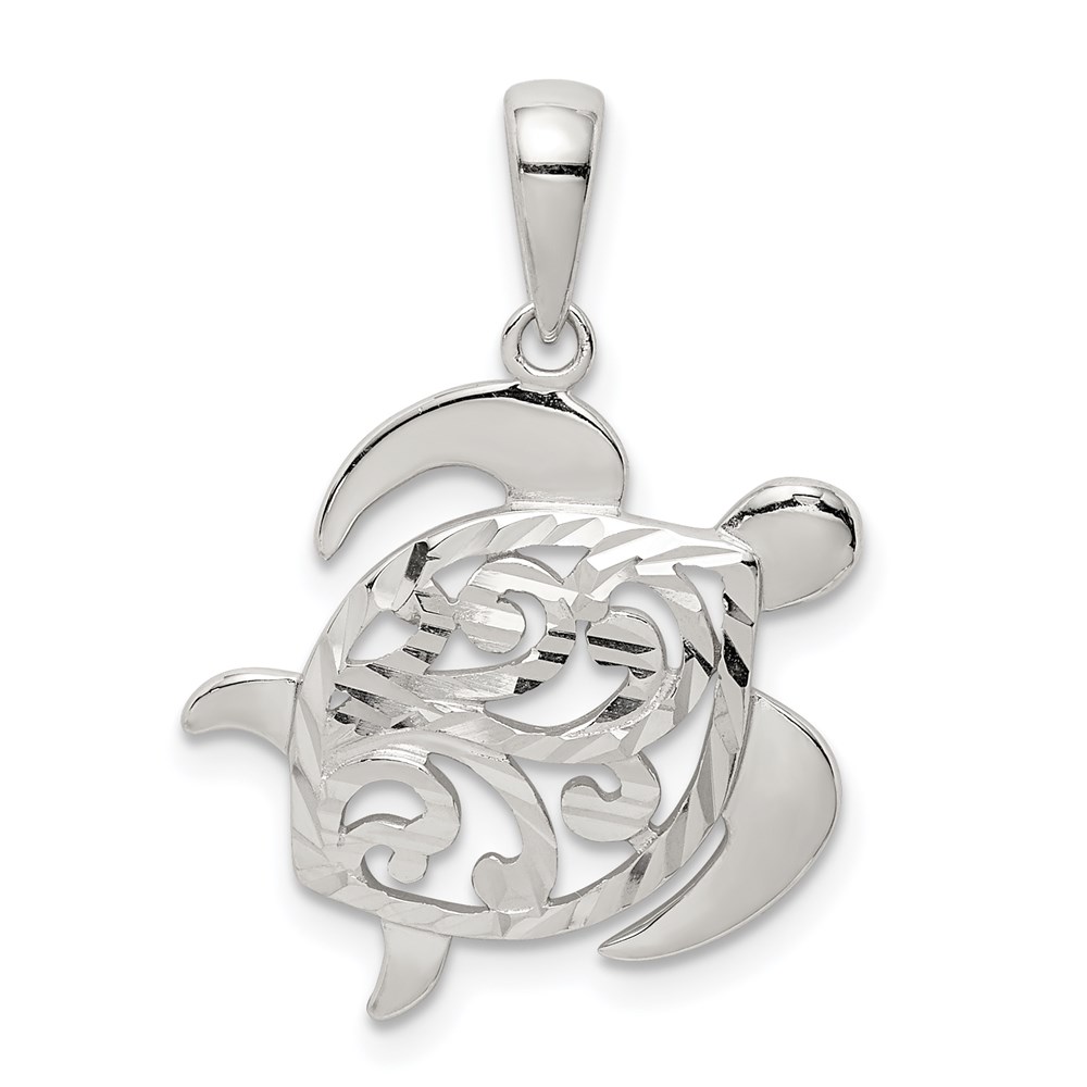 Sterling Silver Diamond-cut Turtle Pendant