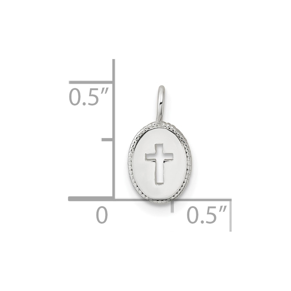 Sterling Silver E-Coating Small Oval Cut-out Cross Charm
