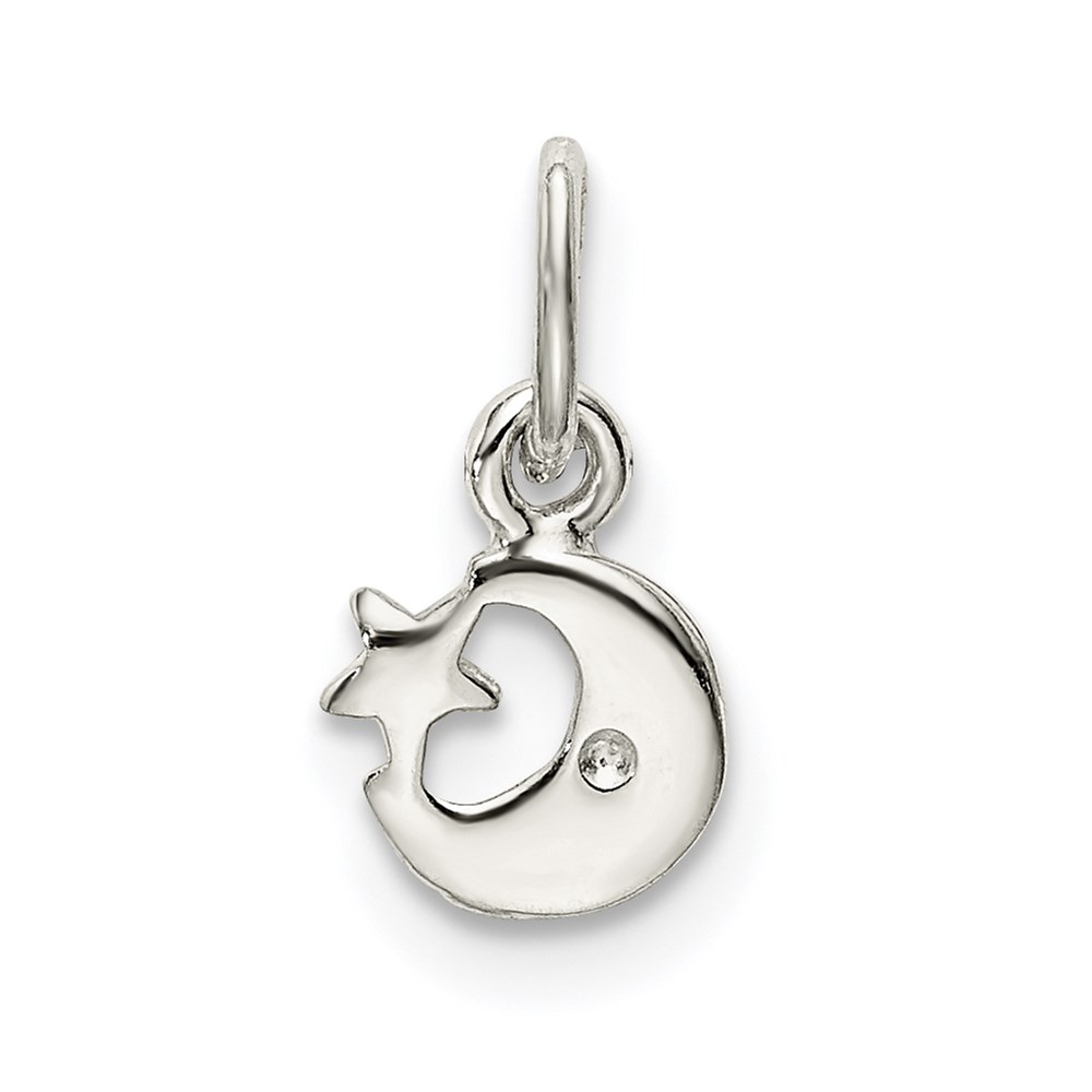 14k White Gold 1/10 carat Diamond and Moonstone Star and Moon Chain Slide