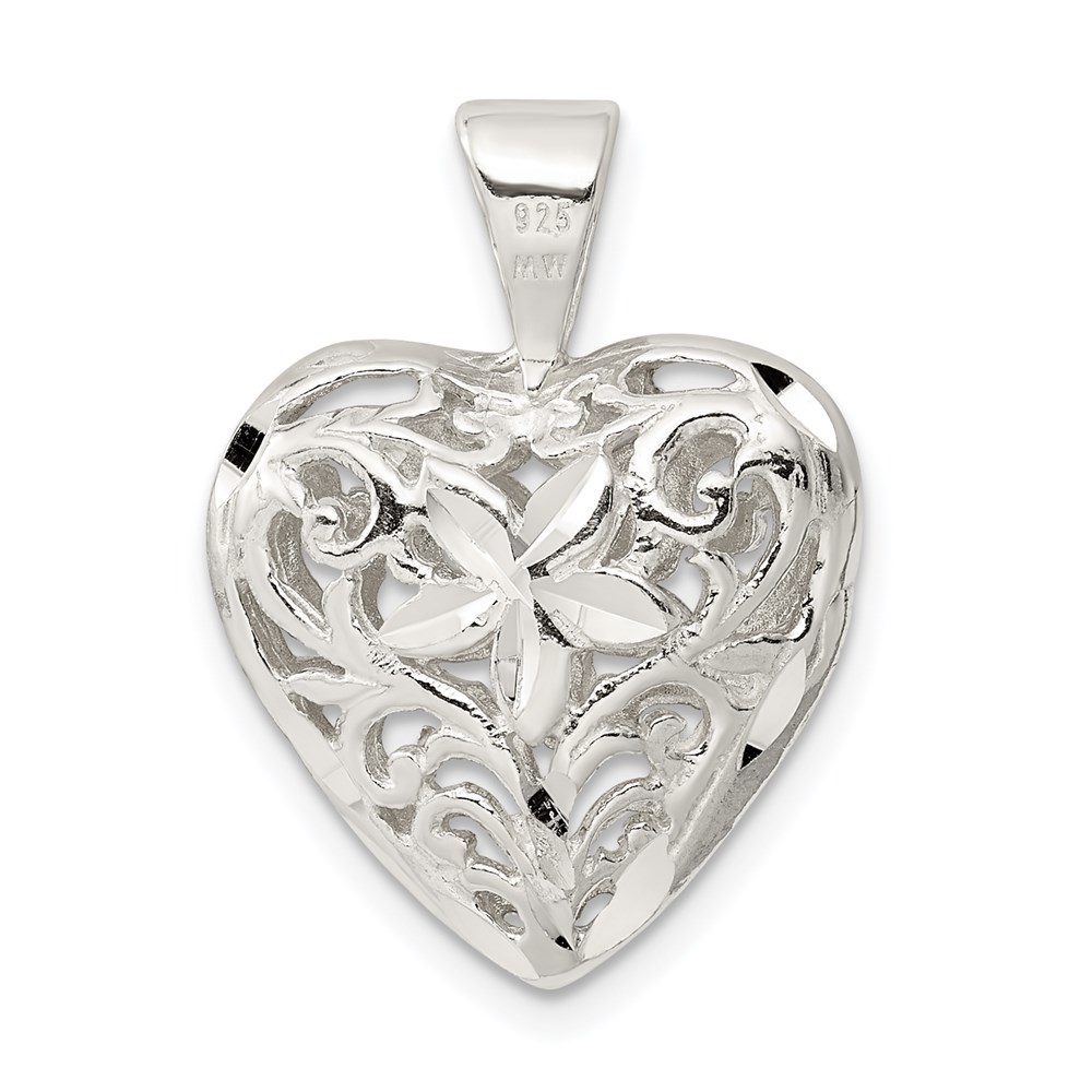 Sterling Silver Filigree Floral Heart Pendant