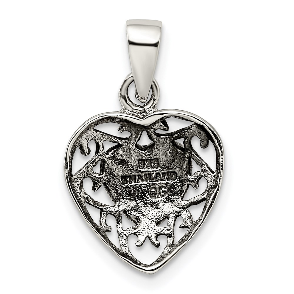Sterling Silver Filigree Frame Onyx Heart Antiqued Heart Pendant
