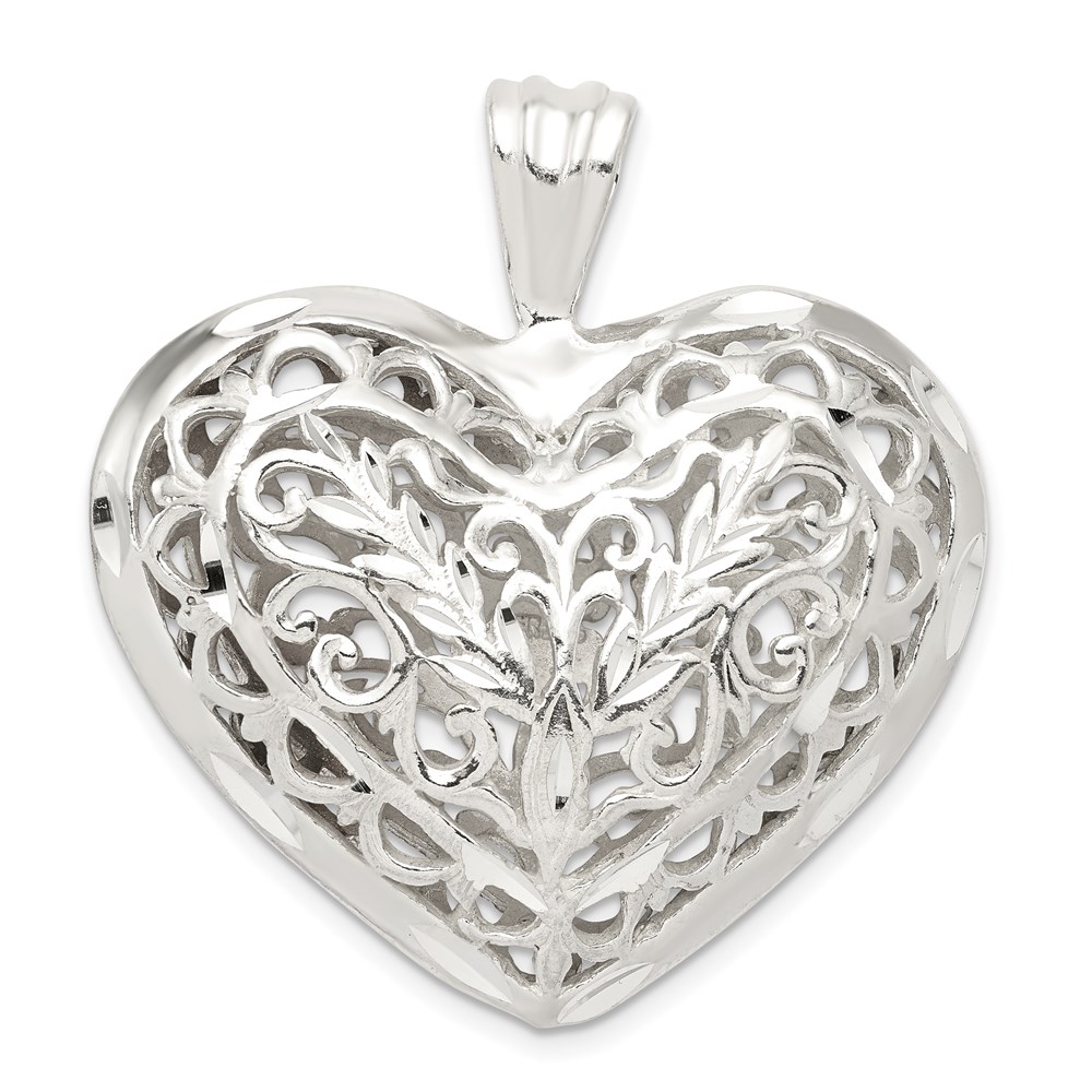 Sterling Silver Filigree Puffed Heart Pendant