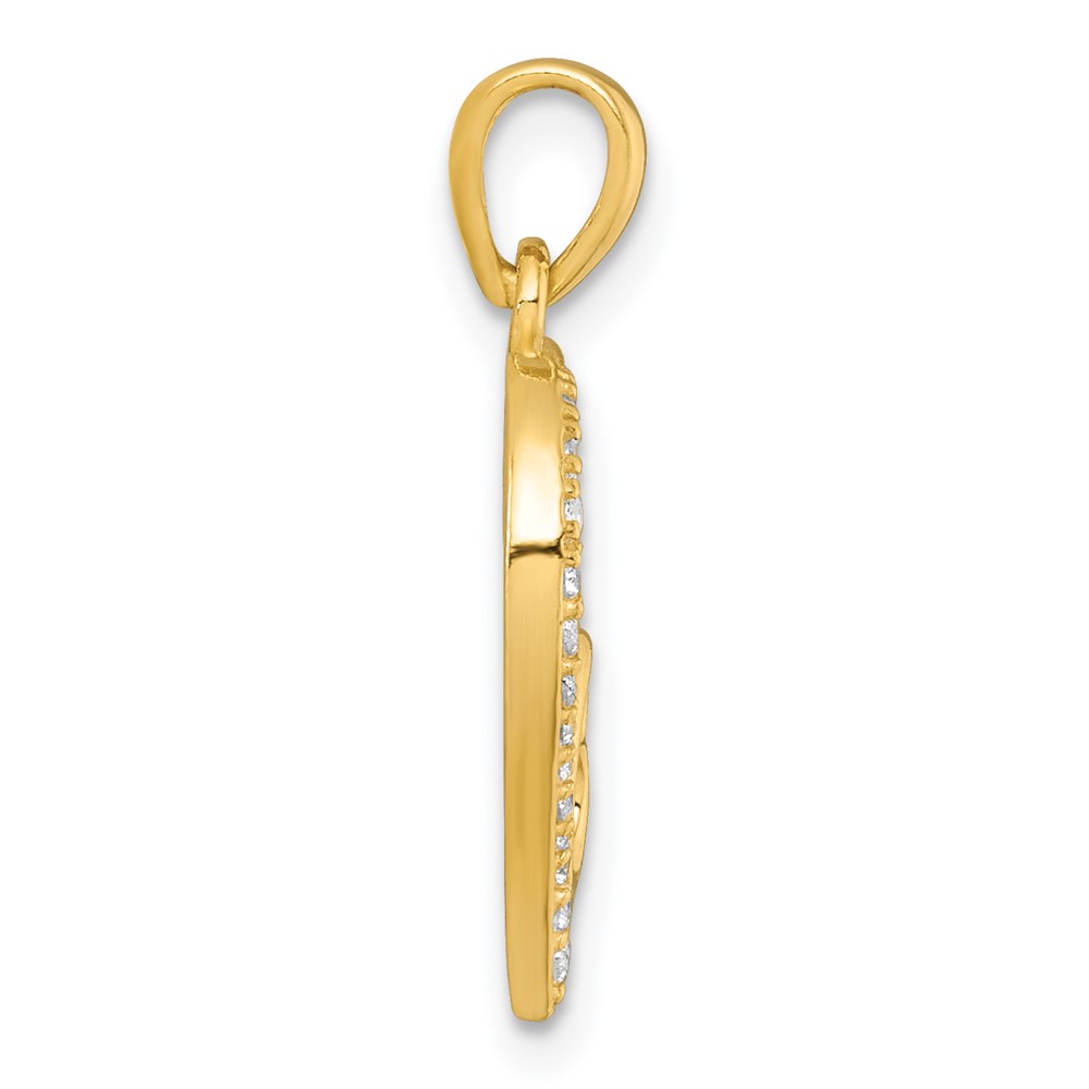 Sterling Silver Gold-tone Polished CZ Large Heart with Small Heart Pendant