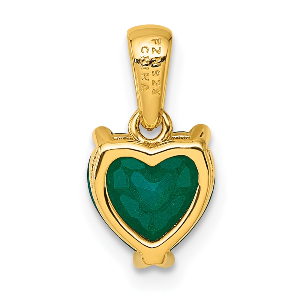Sterling Silver Gold-tone Polished Green Chalcedony Heart Pendant
