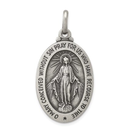 Sterling Silver Platinum-plated Miraculous Heart Medal
