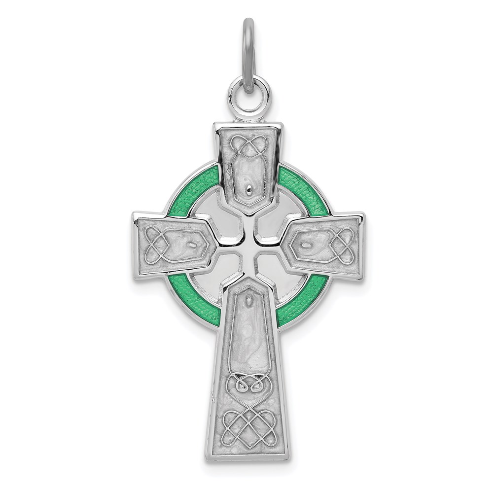 Sterling Silver Platinum-plated Polished Epoxy Irish Cross Pendant
