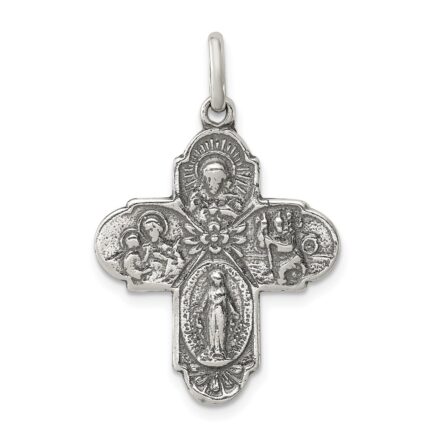 Sterling Silver Platinum-plated Satin 4-way Medal