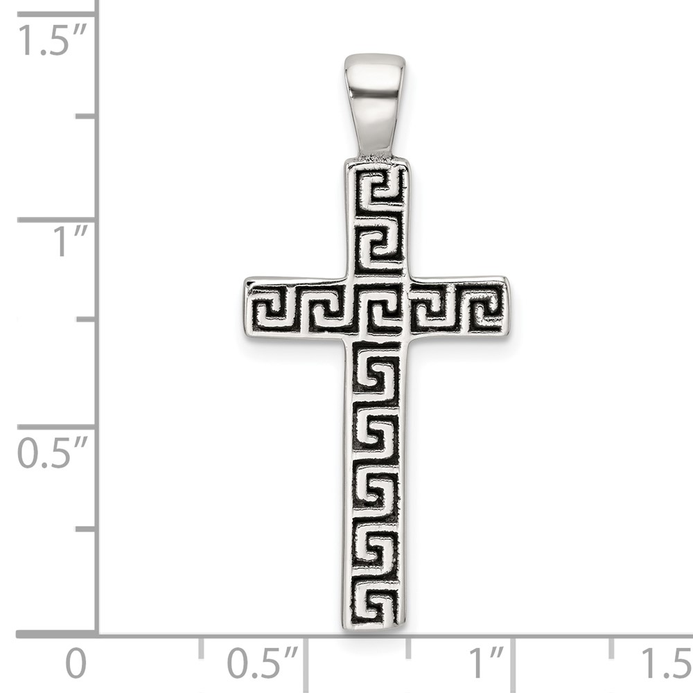 Sterling Silver Polished and Antiqued Greek Key Latin Cross Pendant