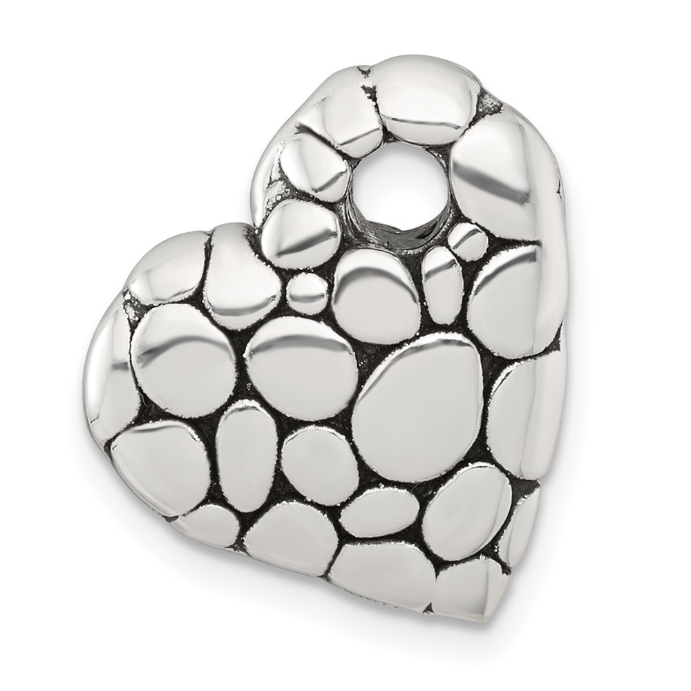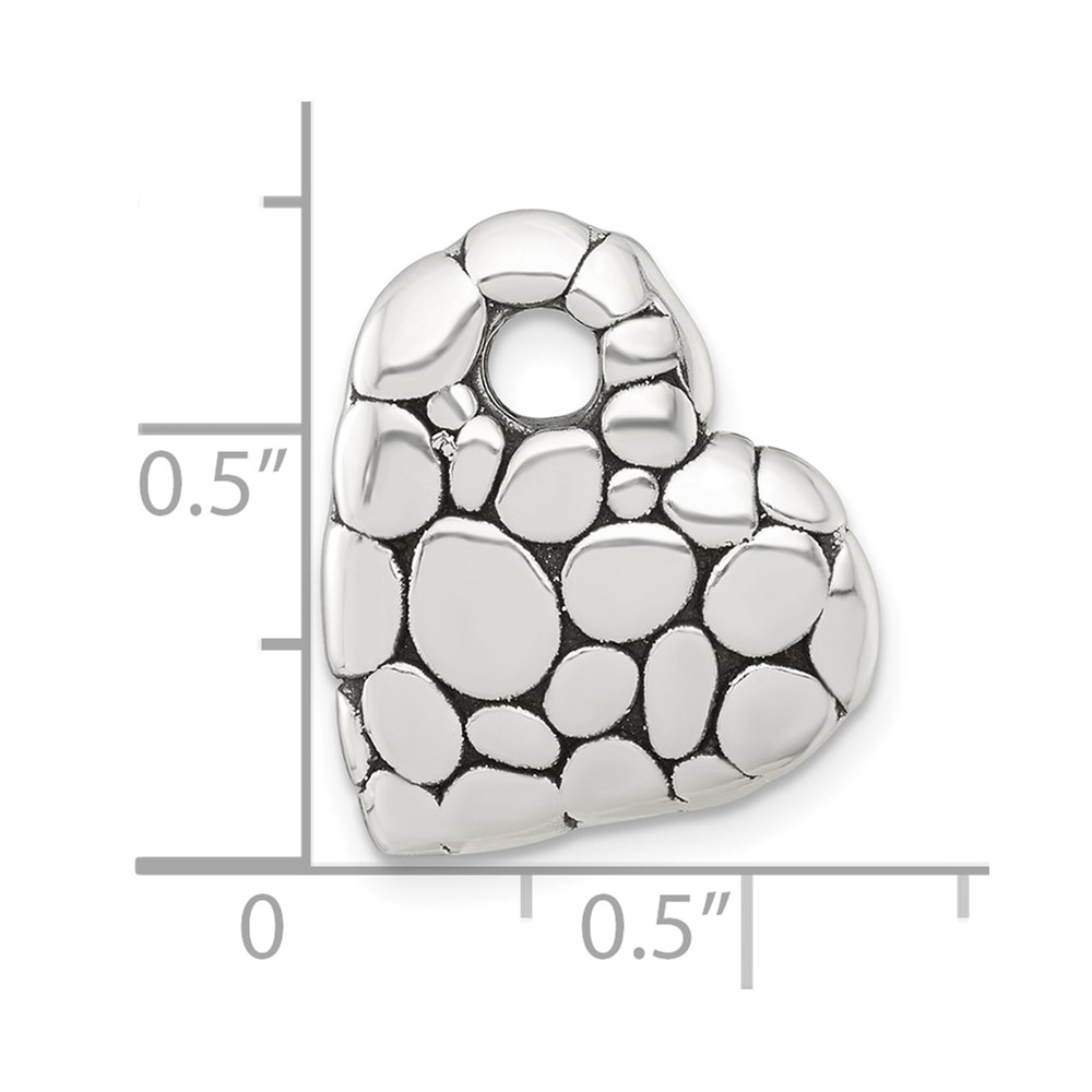 Sterling Silver Polished and Antiqued Pebbled Heart Chain Slide Pendant