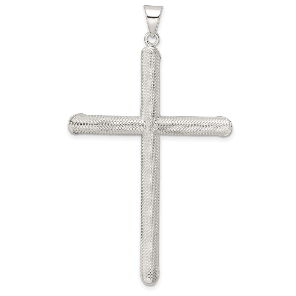 Sterling Silver Polished and Texture Tube Cross Pendant