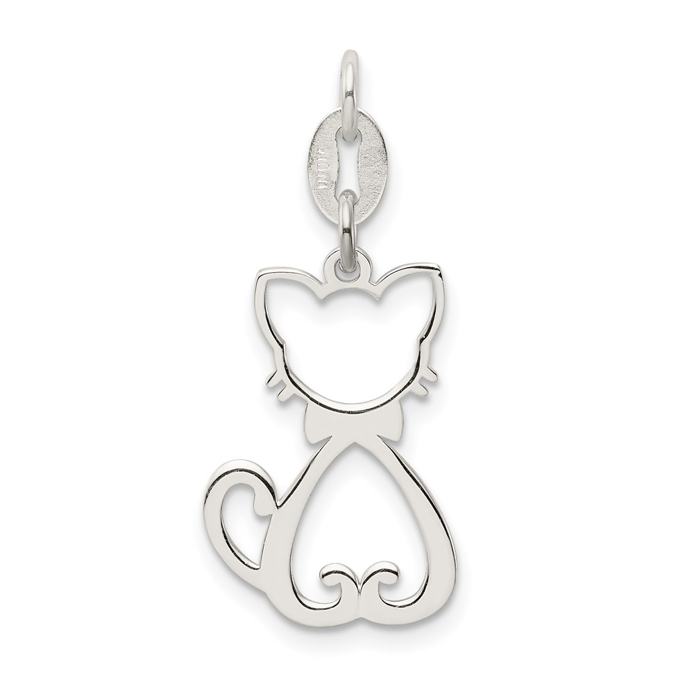 Sterling Silver Rhodium-plated CZ Cat Pendant