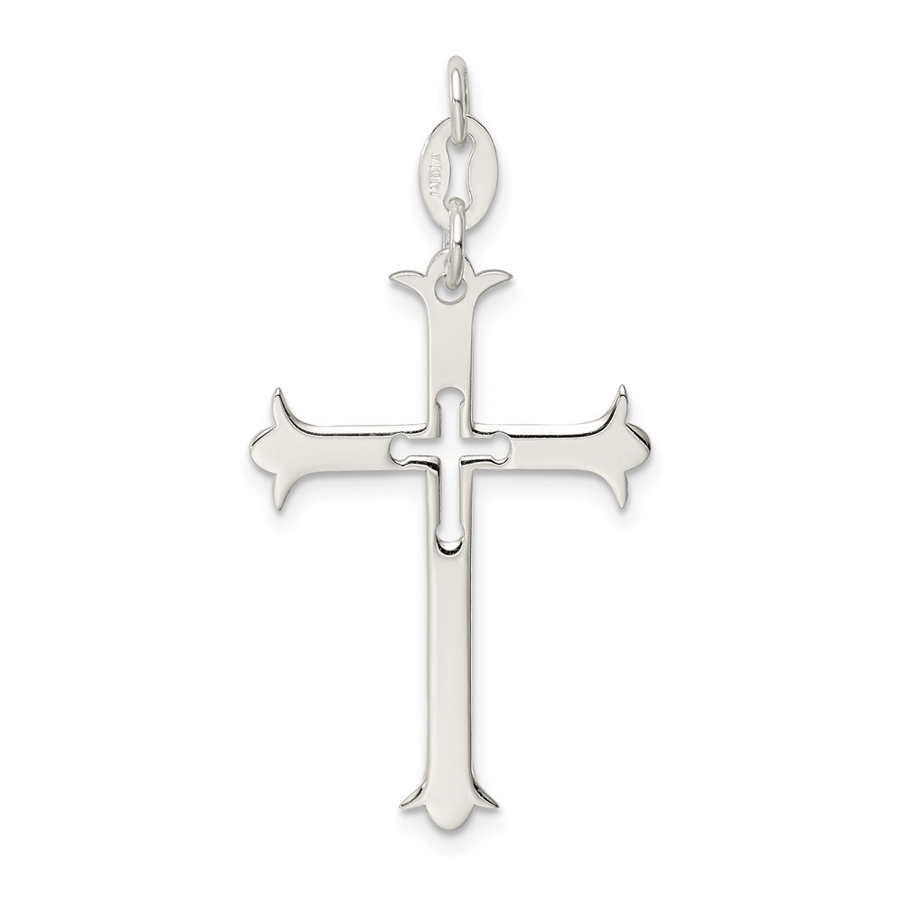 14k White Gold 1/10 carat Diamond Filigree Budded Cross Pendant