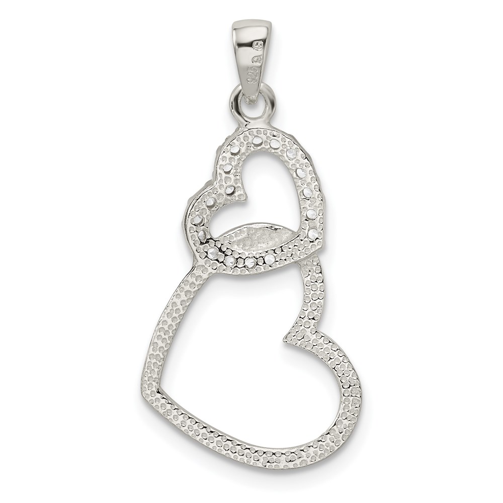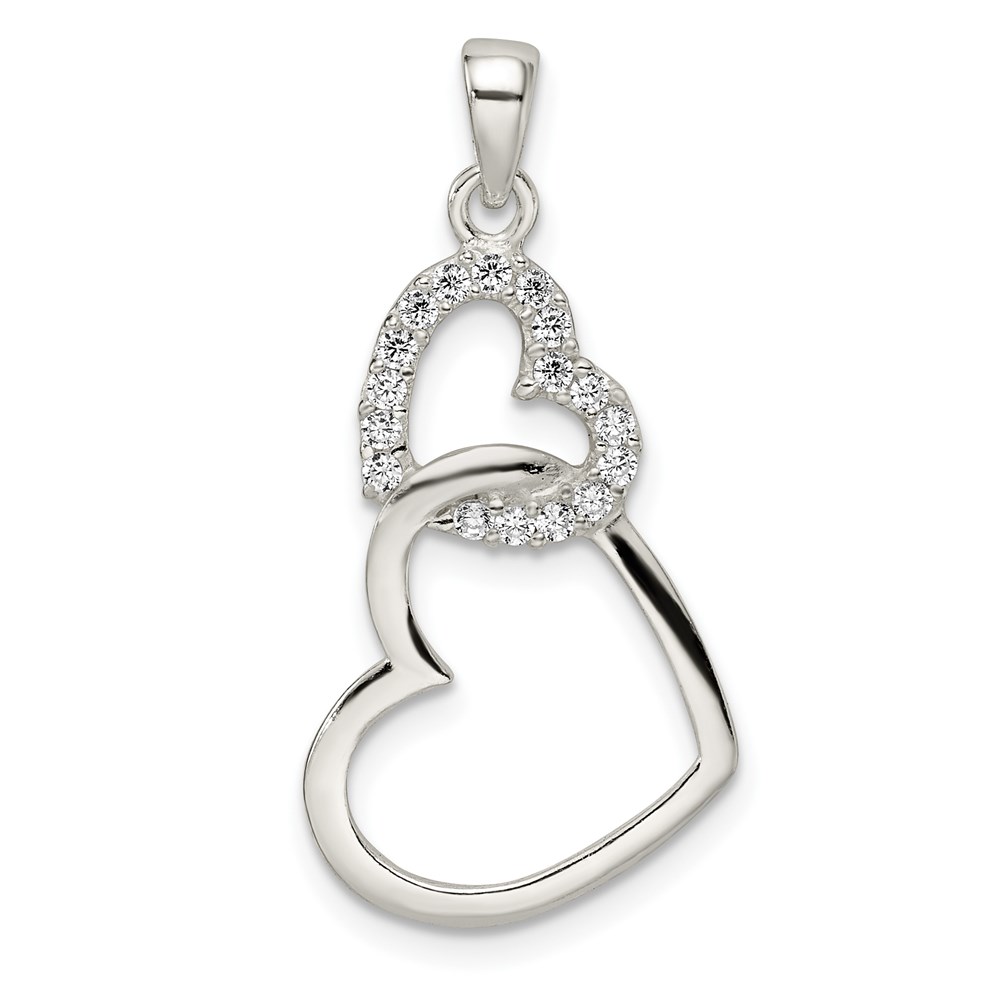 Sterling Silver Polished CZ Double Heart Pendant