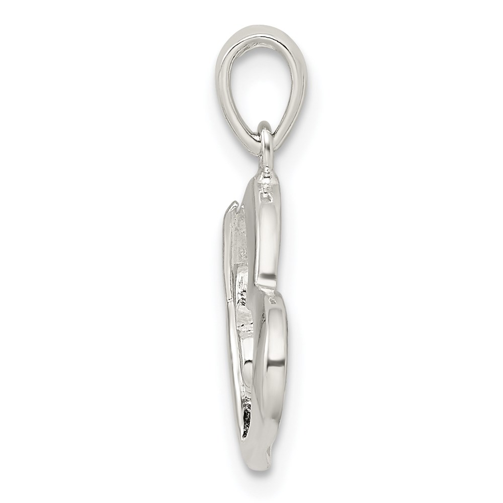 Sterling Silver Polished Glitter Enamel Heart w/Butterfly Pendant