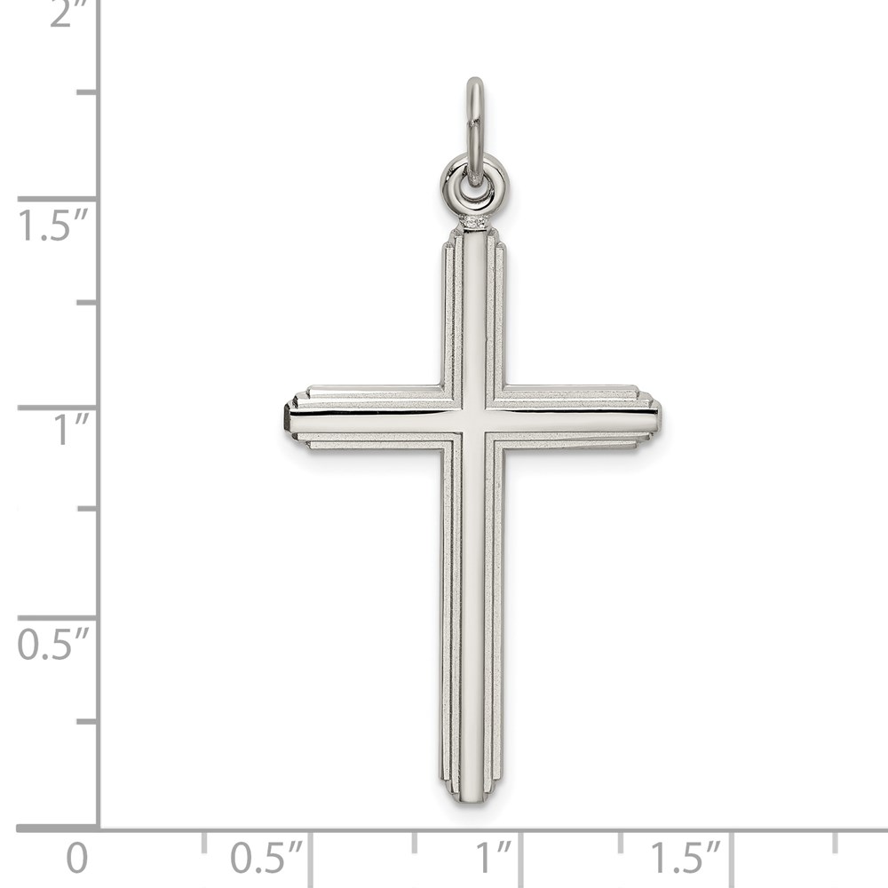 Sterling Silver Polished Grooved Cross Pendant