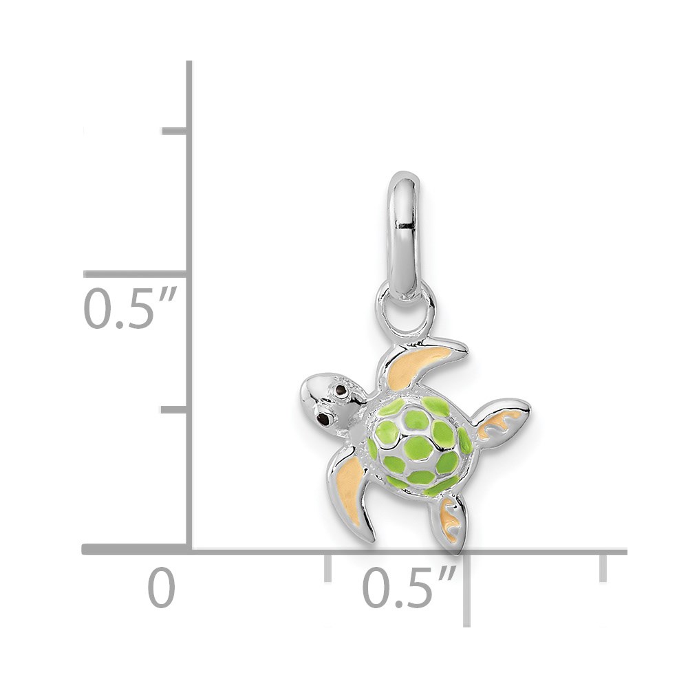 Sterling Silver Polished Multi-color Enameled Sea Turtle Children’s Pendant