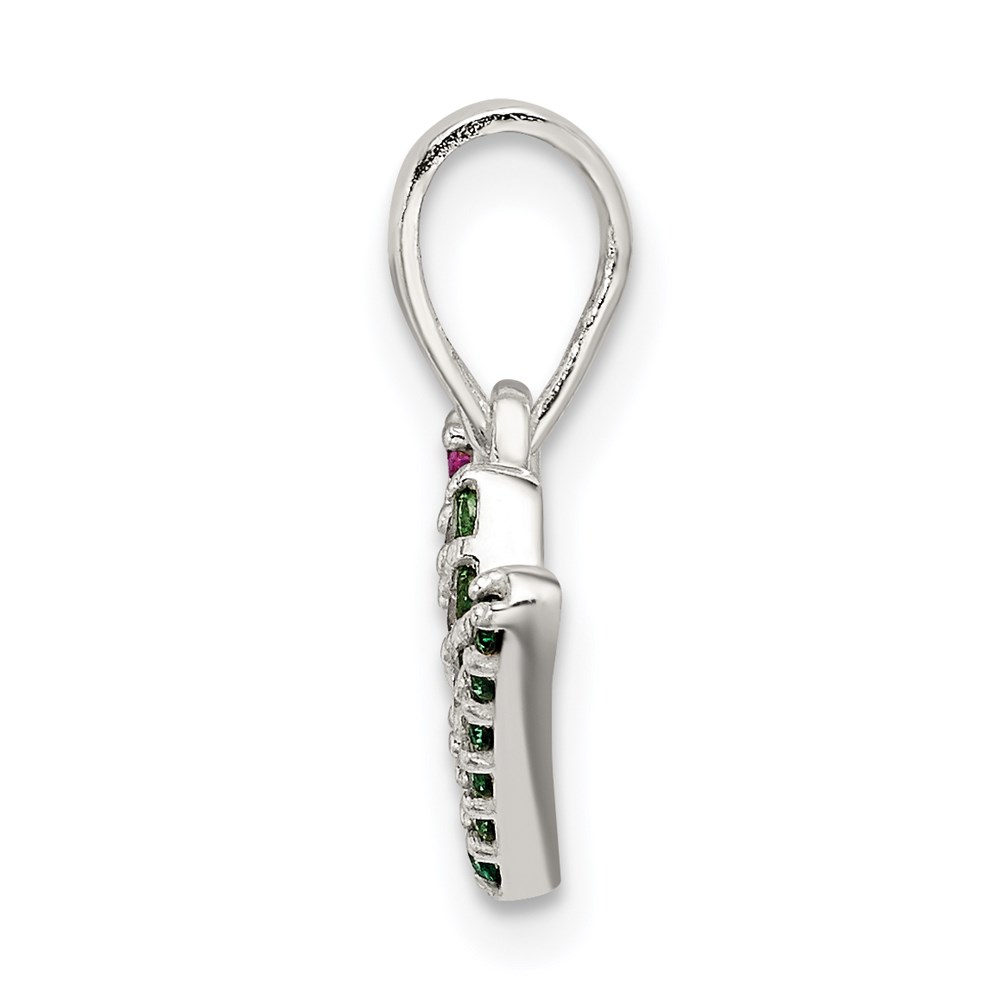 Sterling Silver Polished Red White & Green CZ Joy Pendant