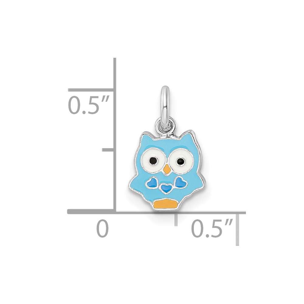 Sterling Silver RH-plated Multi-color Enameled Owl Children’s Pendant