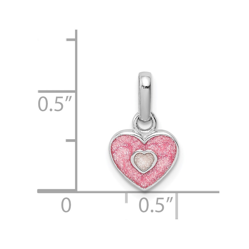 Sterling Silver RH-plated Pink Glitter Enameled Heart Children’s Pendant