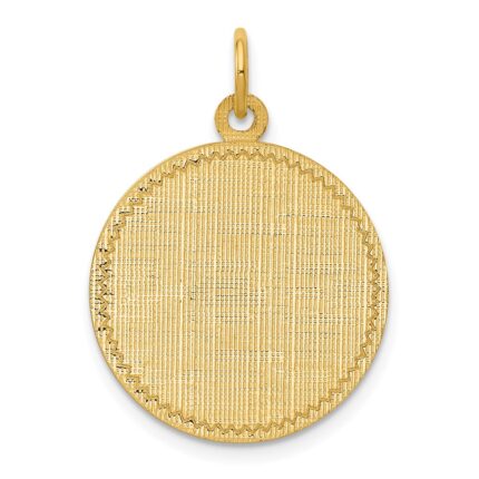 14k Patterned with Zig-Zag Edge .018 Gauge Round Engravable 26x22mm Disc Charm