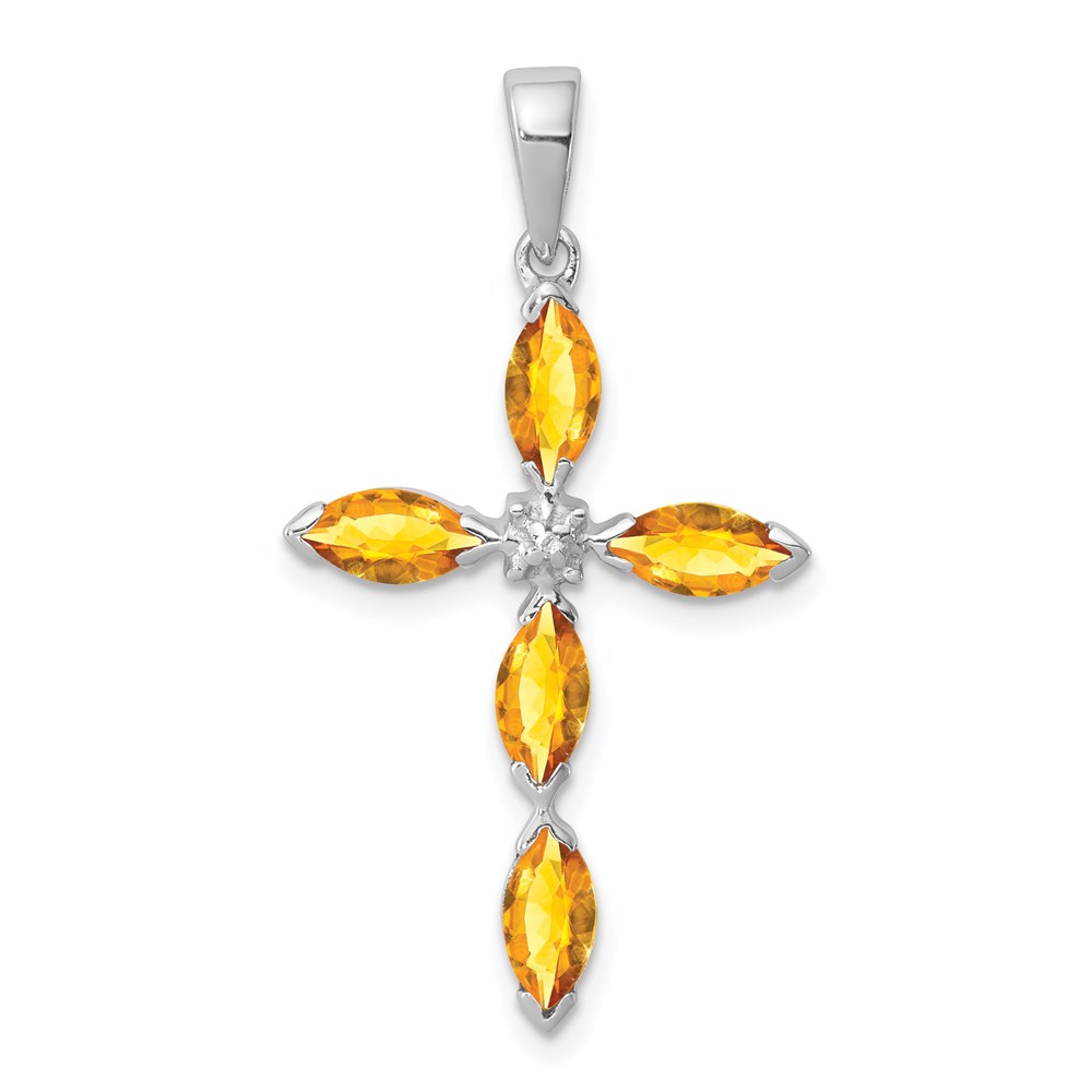 Sterling Silver Rhodium Citrine & Diamond Cross Pendant
