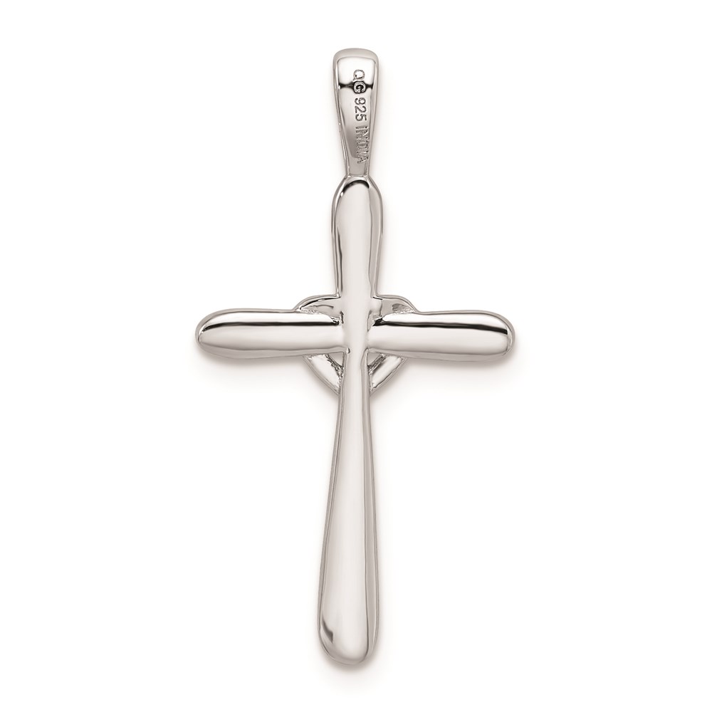 Sterling Silver Rhodium & Diam. Cross with Heart Pendant