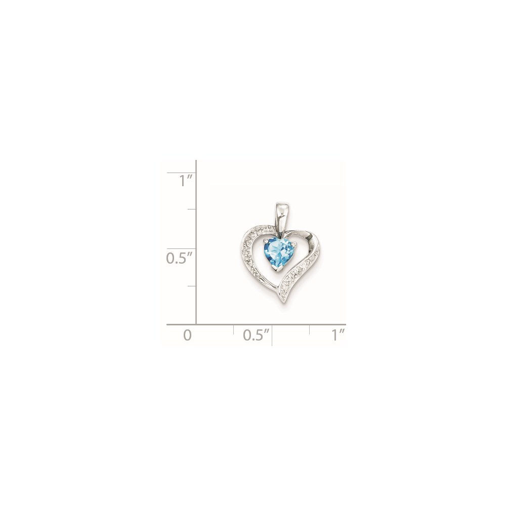 Sterling Silver Rhodium Heart Swiss Blue Topaz & Diamond Heart Pendant
