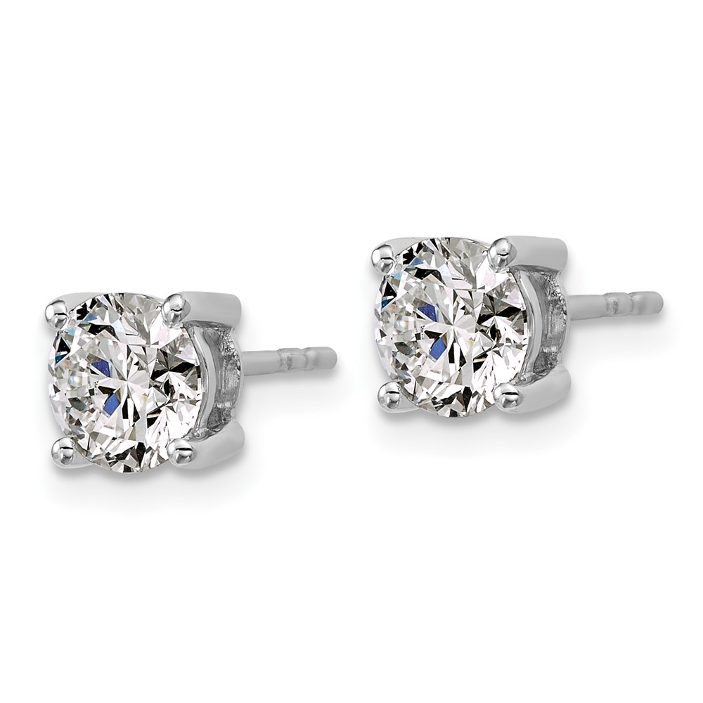 Sterling Silver Rhodium-plated 2 carat Lab Grown Diamond VS+ F+ Round Complete Four Prong Stud Earrings
