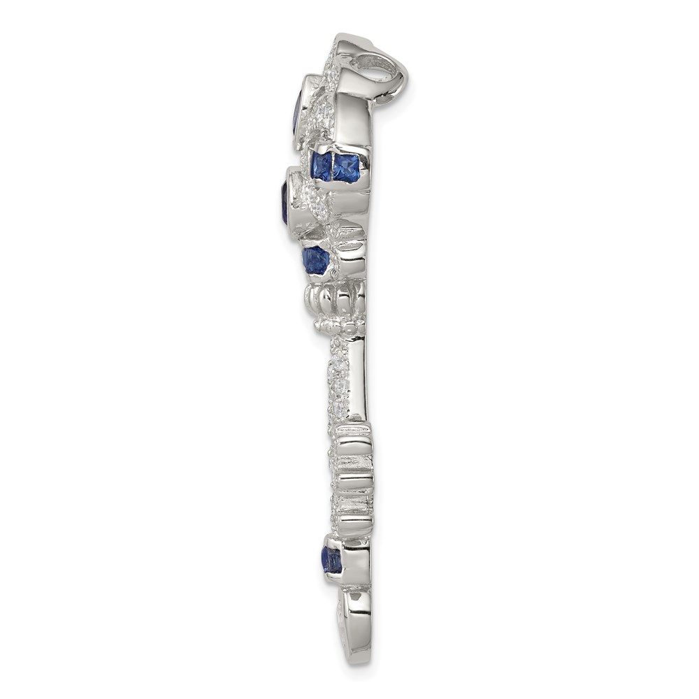 Sterling Silver Rhodium-plated Blue and Clear CZ Key Slide