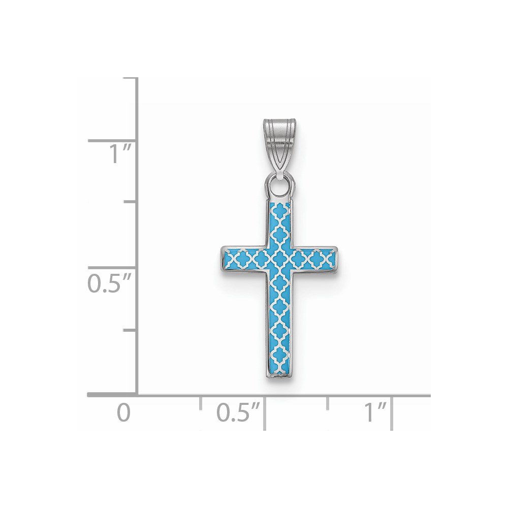 Sterling Silver Rhodium-plated Blue Enameled Cross Hatch Cross Charm