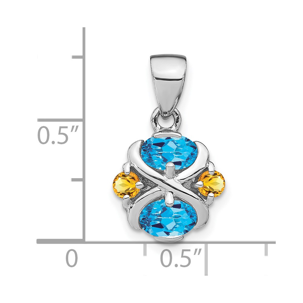 Sterling Silver Rhodium-plated Blue Topaz and Citrine Pendant