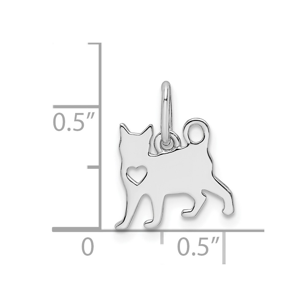 Sterling Silver Rhodium-plated Cat w/Heart Pendant