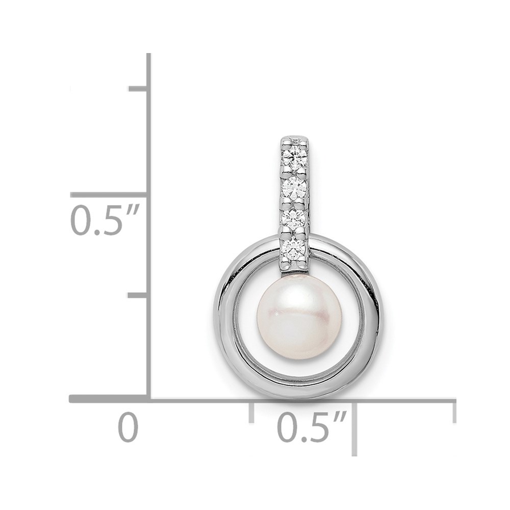 Sterling Silver Rhodium-plated Circle w/CZ (5-6mm) Button FWC Pearl Slide